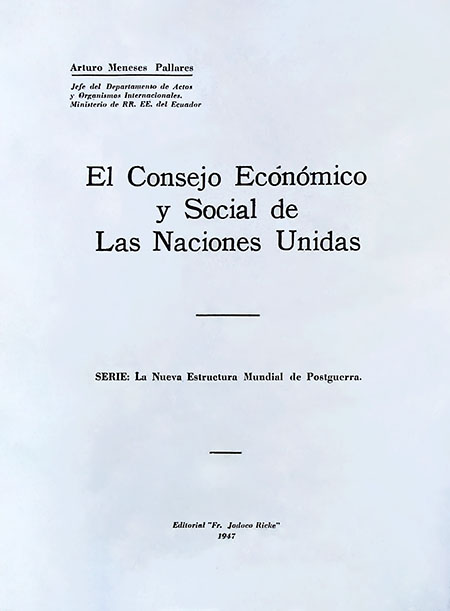 Cita Sugerida : Meneses Pallares, Arturo. 1947. El Consejo Económico y Social de las Naciones Unidas. Quito: Editorial Fr. Jodoco Ricke.