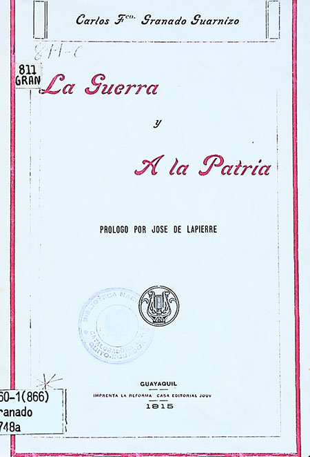Cita Sugerida : Granado Guarnizo, Carlos. 1915. La guerra y a la patria. Guayaquil: Imprenta La Reforma
