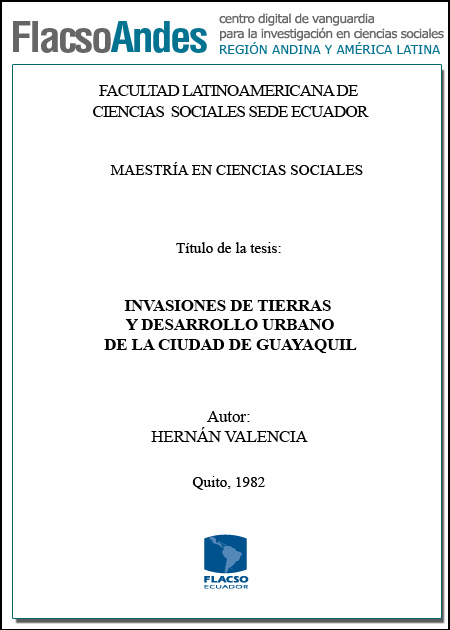 Valencia, Hernán (1982). Invasiones de tierras y desarrollo urbano de la ciudad de Guayaquil. Maestría en Ciencias Sociales, FLACSO Sede Ecuador. Quito.