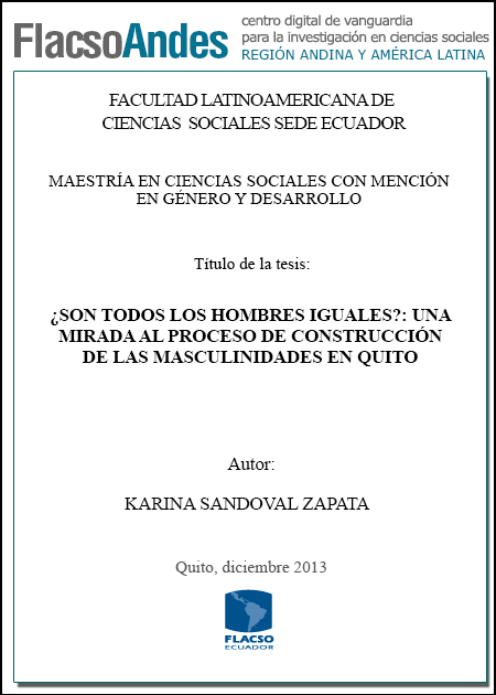 Sandoval, K. (2013). ¿Son todos los hombres iguales? : una mirada al proceso de construcción de las masculinidades en Quito (Tesis de Maestría en Ciencias Sociales con mención en Género y Desarrollo). FLACSO Sede Ecuador, Quito.