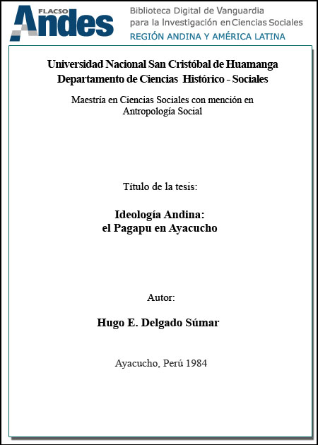 Delgado Súmar, Hugo E. 1984. Ideología andina : el Pagapu en Ayacucho. Tesis de maestría, Universidad Nacional San Cristóbal de Huamanga.