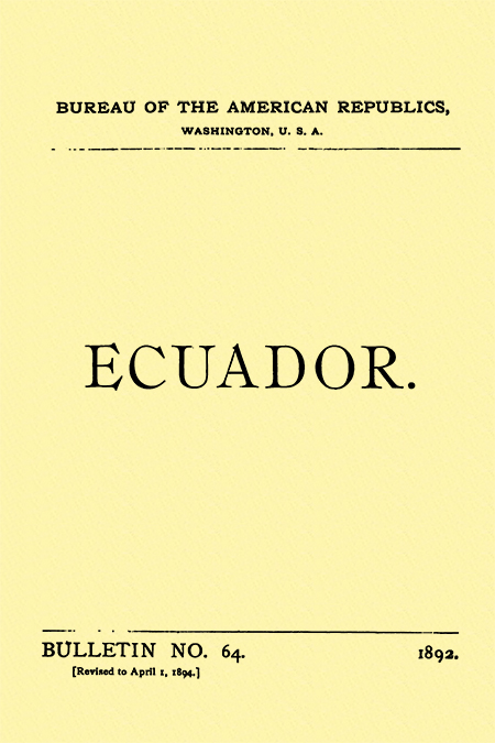 Bureau of the American Republics. Washington, U.S.A. 1892. Ecuador. Washington, Estados Unidos : Goverment Printing Office.