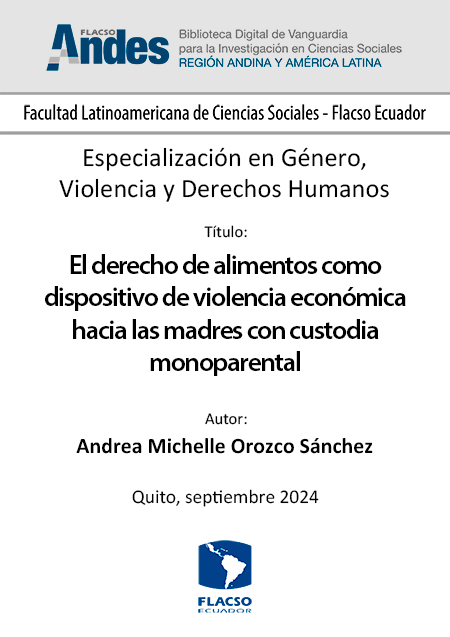 Orozco Sánchez, Andrea Michelle. 2024. El derecho de alimentos como dispositivo de violencia económica hacia las madres con custodia monoparental. Tesina de especialización, Flacso Ecuador.