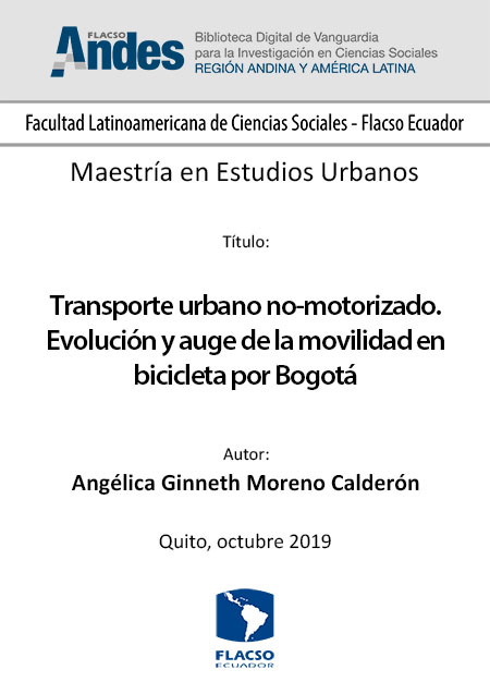 Moreno Calderón, Angélica Ginneth. 2019. Transporte urbano no-motorizado. Evolución y auge de la movilidad en bicicleta por Bogotá. Tesis de maestría, Flacso Ecuador.