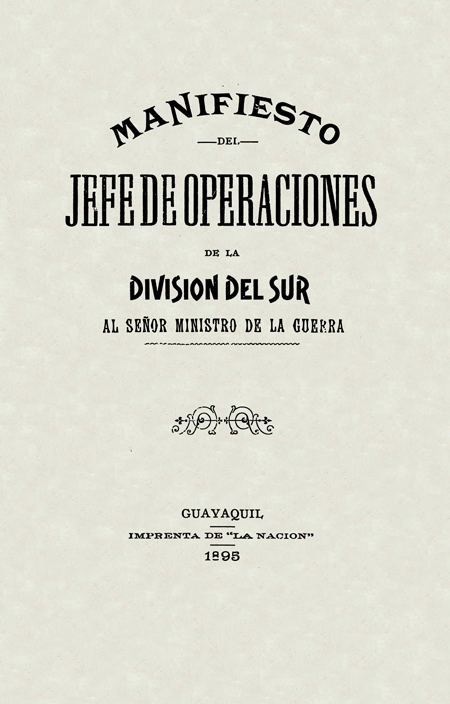 Serrano, Manuel. 1895. Manifiesto del jefe de operaciones de la División del Sur al señor Ministro de la Guerra. Guayaquil, Ecuador : Imprenta de "La Nación".