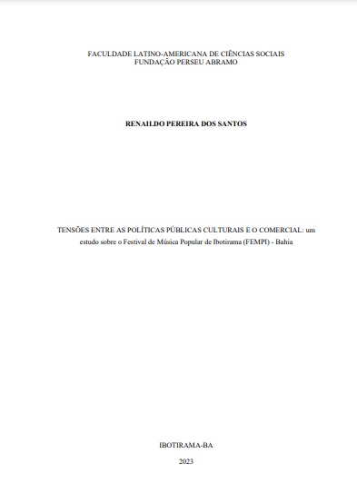Pereira dos Santos, Renaildo. 2023. Tensões Entre as Políticas Públicas Culturais e o Comercial: um estudo sobre o Festival de Música Popular de Ibotirama (FEMPI) - Bahia. Tesis de maestría, Flacso Brasil.