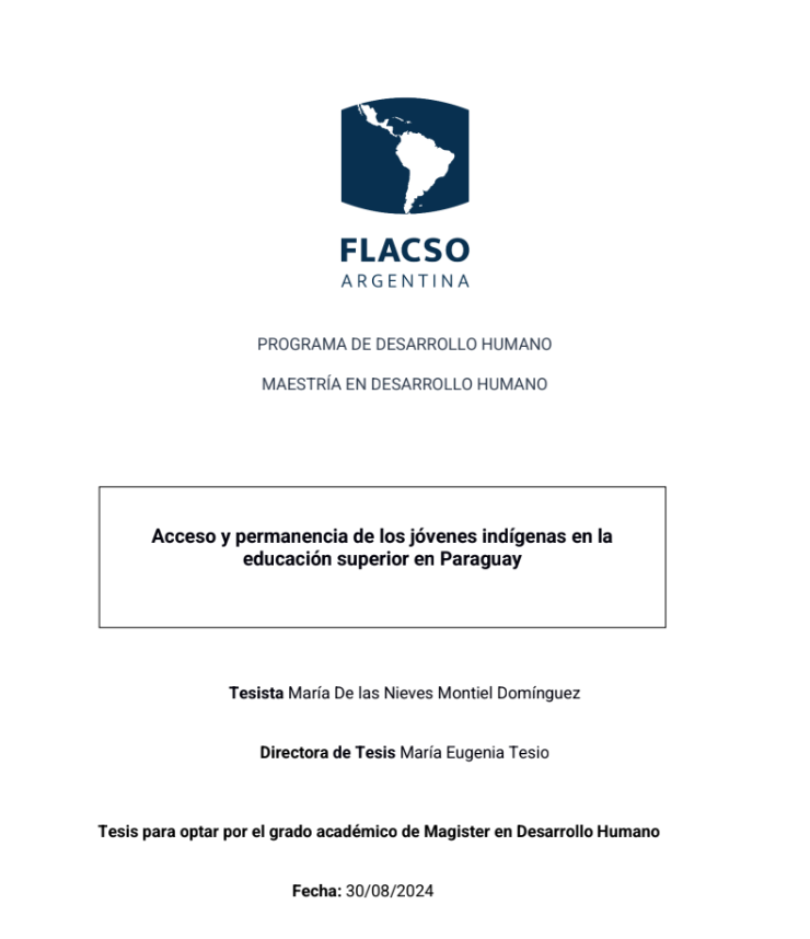 Montiel Domínguez, María De las Nieves (2024). Acceso y permanencia de los jóvenes indígenas en la educación superior en Paraguay. Tesis de Maestría. FLACSO. Sede Académica Argentina, Buenos Aires.