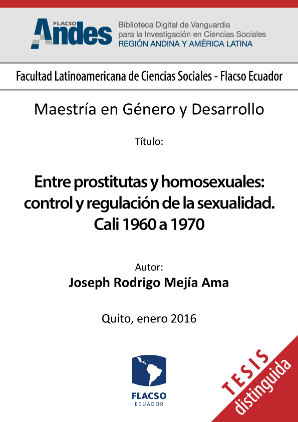 Mejía Ama, Joseph Rodrigo. 2016. Entre prostitutas y homosexuales: control y regulación de la sexualidad. Cali 1960 a 1970. Tesis de maestría, Flacso Ecuador.