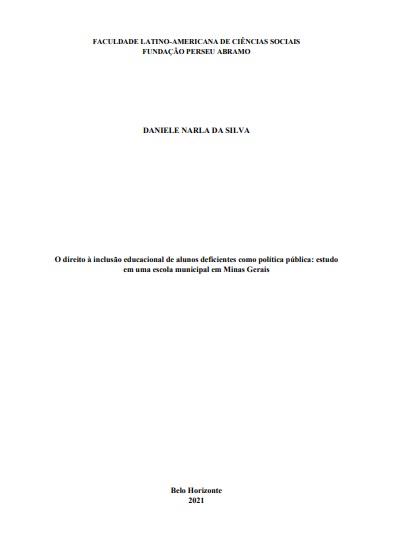 Narla da Silva, Daniele. 2021. O direito à inclusão educacional de alunos deficientes como política pública: estudo em uma escola municipal em Minas Gerais. Tesis de maestría, Flacso Brasil.