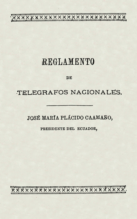 Plácido Caamaño, José María. 1884. Reglamento de Telégrafos Nacionales. Quito, Ecuador : [Editor no identificado].