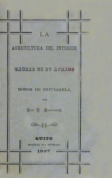 Martínez, Luis Alfredo. 1897. La agricultura del interior : causas de su atraso y modos de impulsarla por Luis A. Martínez. Quito, Ecuador : Imprenta "La Novedad"