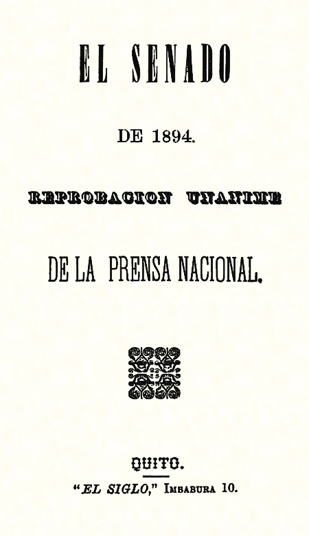Prensa Nacional. 1894. El senado de 1894 : Reprobación unánime de la Prensa Nacional. Quito, Ecuador : El Siglo.