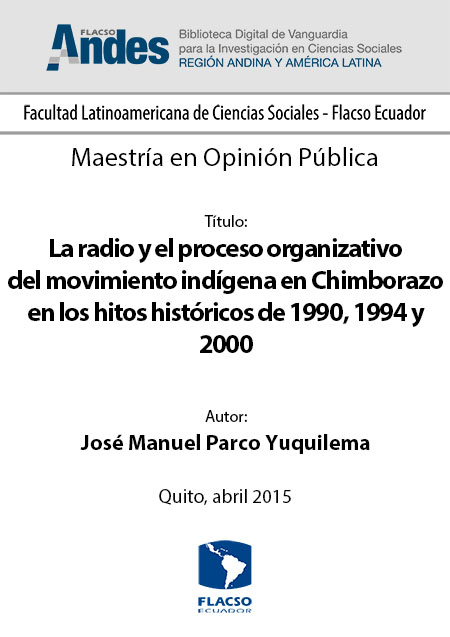 Parco Yuquilema, José Manuel. 2015. La radio y el proceso organizativo del movimiento indígena en Chimborazo en los hitos históricos de 1990, 1994 y 2000. Tesis de maestría, Flacso Ecuador.