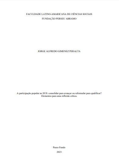 Alfredo Gimenez Peralta, Jorge. 2023. A participação popular no SUS: consolidar para avançar ou reformular para qualificar? Elementos para uma reflexão crítica. Tesis de maestría, Flacso Brasil.