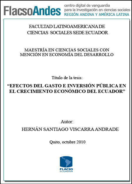Viscarra Andrade, Hernán Santiago (2010). Efectos del gasto e inversión pública en el crecimiento económico del Ecuador. Maestría en Ciencias Sociales con mención en Economía del Desarrollo; FLACSO Sede Ecuador. Quito. [98] p.
