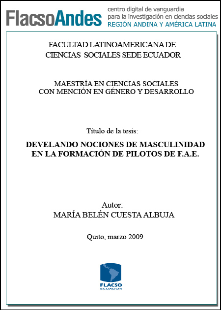 Cuesta Albuja, María Belén (2009). Develando nociones de masculinidad en la formación de pilotos FAE. Maestría en Ciencias Sociales con mención en Género y Desarrollo. FLACSO, Sede Ecuador. Quito. 109 p.