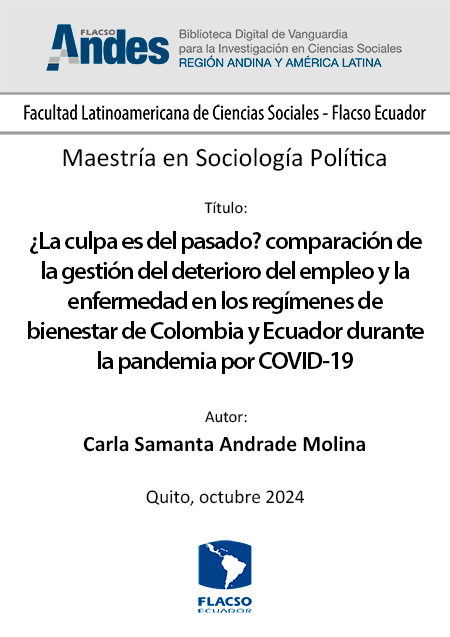 Andrade Molina, Carla Samanta. 2024. ¿La culpa es del pasado? comparación de la gestión del deterioro del empleo y la enfermedad en los regímenes de bienestar de Colombia y Ecuador durante la pandemia por COVID-19. Tesis de maestría, Flacso Ecuador.