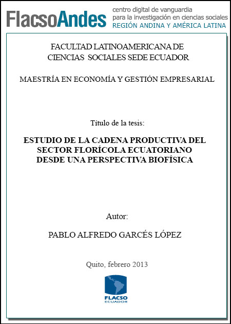 Garcés, P. A. (2012). Estudio de la cadena productiva del sector florícola ecuatoriano desde una perspectiva biofísica (Tesis de Maestría en Economía y Gestión Empresarial). FLACSO Sede Ecuador, Quito.