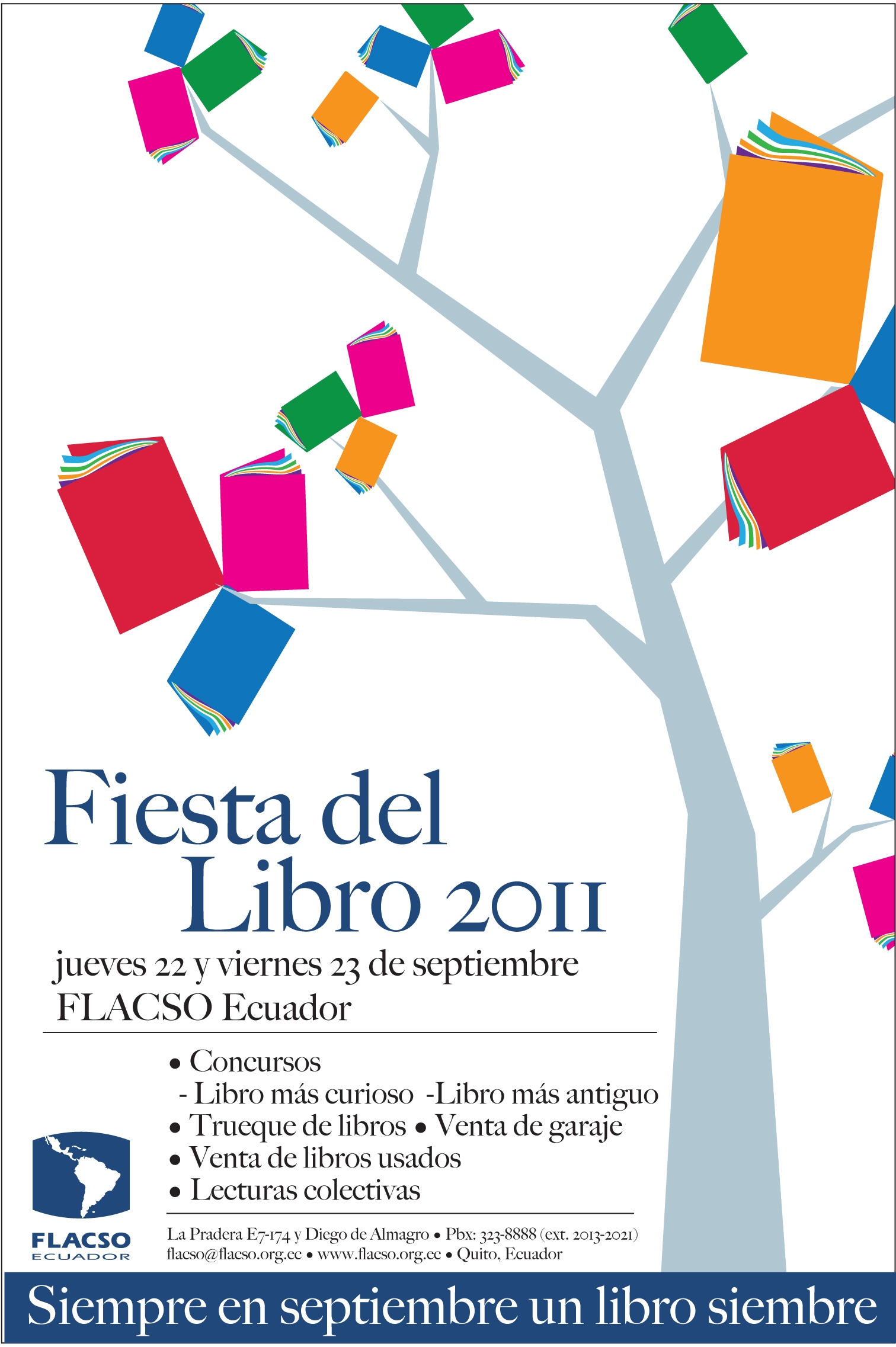 Afiche promocional de la Fiesta del libro 2011 "Siempre en septiembre un libro siembre", realizada del 22 al 23 de septiembre de 2011 en FLACSO Sede Ecuador.