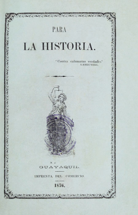 Proaño, Víctor y Veintemilla, Ignacio de. 1876. Para la historia. Guayaquil, Ecuador : Imprenta del Comercio.