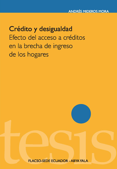 Mideros Mora, Andrés. 2010. Crédito y desigualdad. Efecto del acceso a créditos en la brecha de ingreso de los hogares. Quito: FLACSO Ecuador / Abya-Yala.