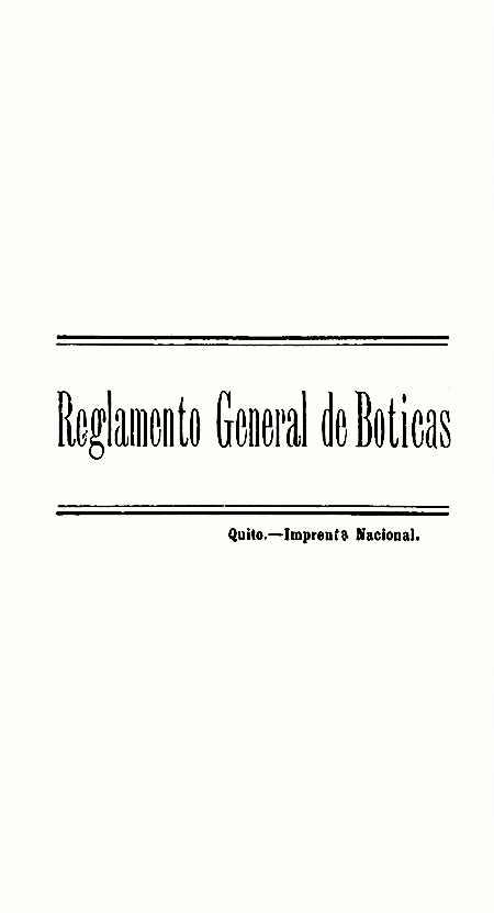 Reglamento general sobre el establecimiento y ejercicio de las boticas (farmacias) en el Ecuador.
