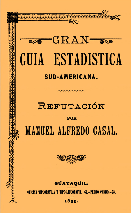 Casal, Manuel Alfredo. 1895. Gran guía estadística sud-americana: refutación por Manuel Alfredo Casal. Guayaquil, Ecuador : Oficina Tipográfica y Tipo-Litografia.