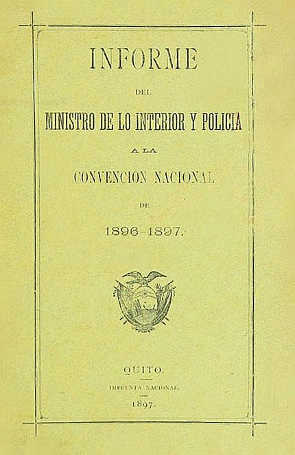 [ s.n ]. 1897. Informe del Ministro de lo Interior y Policía a la Convención Nacional de 1896 - 1897. Quito, Ecuador : Imprenta Nacional.