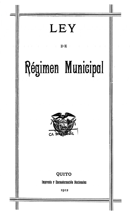 1912. Ley de Régimen Municipal. Quito, Ecuador : Imprenta y Encuadernación Nacionales.