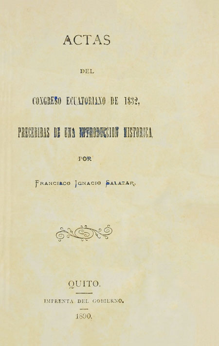 Salazar, Francisco Ignacio. 1890. Actas del Congreso ecuatoriano de 1832, precedidas de una introducción histórica. Quito, Ecuador : Imprenta del Gobierno.