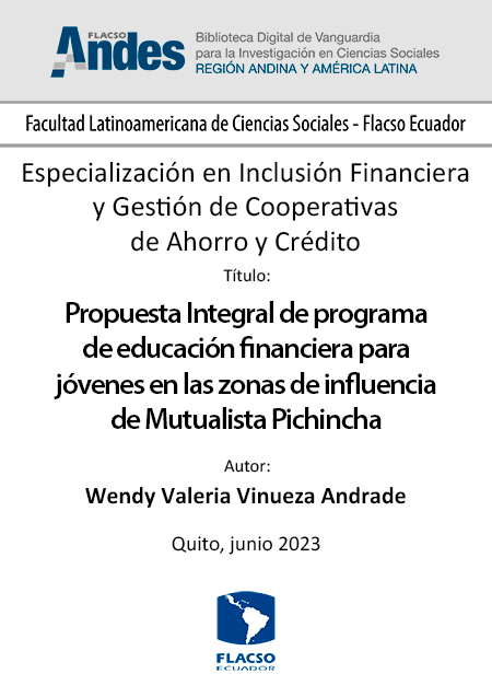 Vinueza Andrade, Wendy Valeria. 2023. Propuesta Integral de programa de educación financiera para jóvenes en las zonas de influencia de Mutualista Pichincha. Tesina de especialización, Flacso Ecuador.