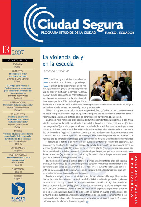 Ciudad segura. FLACSO sede Ecuador. Programa de Estudios de la Ciudad. Quito: FLACSO, (no. 13, enero 2007): 12 p.