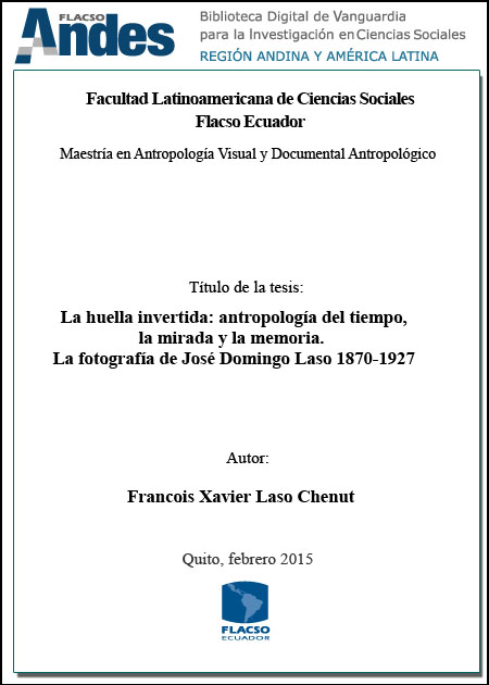 Laso Chenut, Francois Xavier. 2015. La huella invertida: antropologías del tiempo, la mirada y la memoria : la fotografía de José Domingo Laso 1870-1927. Tesis de maestría, Flacso sede Ecuador.