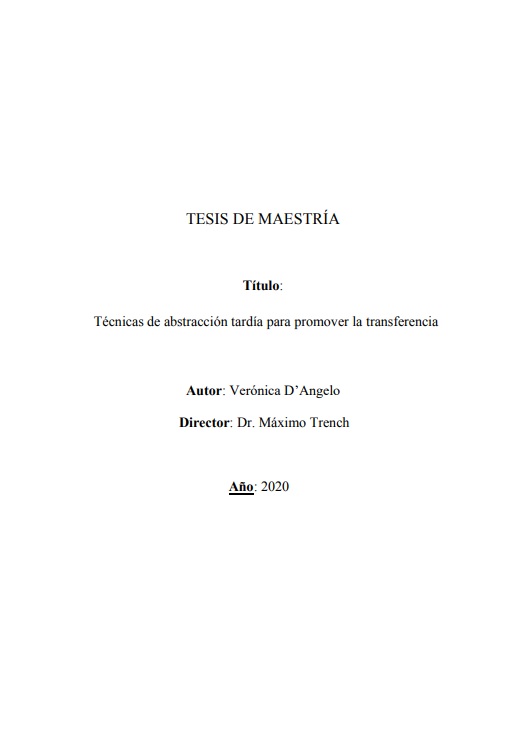 D’Angelo, Verónica Sofía. (2020). Técnicas de abstracción tardía para promover la transferencia. Tesis de Maestría. FLACSO. Sede Académica Argentina, Buenos Aires.