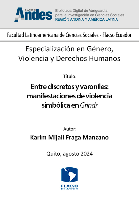 Fraga Manzano, Karim Mijail. 2024. Entre discretos y varoniles: manifestaciones de violencia simbólica en Grindr. Tesina de especialización, Flacso Ecuador.