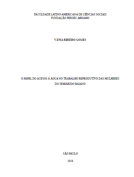 Ribeiro Gomes, Vânia. 2018. O papel do acesso à água no trabalho reprodutivo das mulheres do semiárido baiano. Tesis de maestría, Flacso Brasil.
