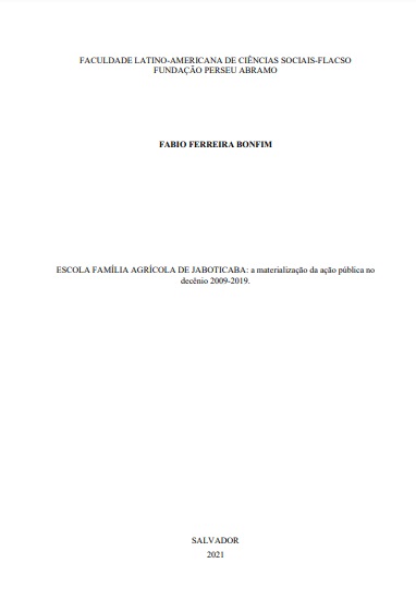 Ferreira Bonfim, Fábio. 2021. ESCOLA FAMÍLIA AGRÍCOLA DE JABOTICABA: a materialização da ação pública no decênio 2009-2019. Tesis de maestría, Flacso Brasil.
