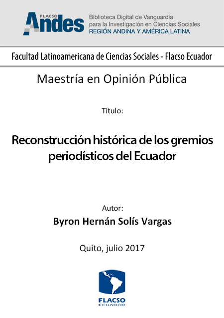 Solís Vargas, Byron Hernán. 2017. Reconstrucción histórica de los gremios periodísticos del Ecuador. Tesis de maestría, Flacso Ecuador.