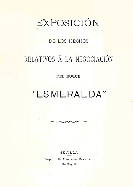 Caamaño y Gómez Cornejo, José María Plácido. 1895. Exposición de los hechos relativos á la negociación del buque "Esmeralda". Sevilla, España : Imp. de El Mercantil Sevillano.