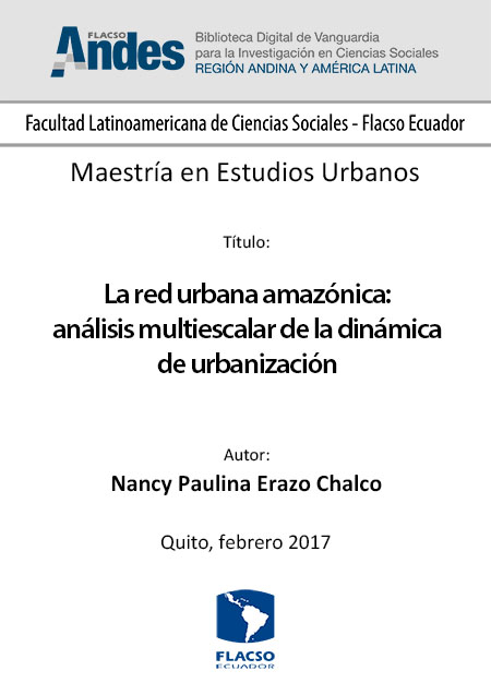 Erazo Chalco, Nancy Paulina. 2017. La red urbana amazónica: análisis multiescalar de la dinámica de urbanización. Tesis de maestría, Flacso Ecuador.