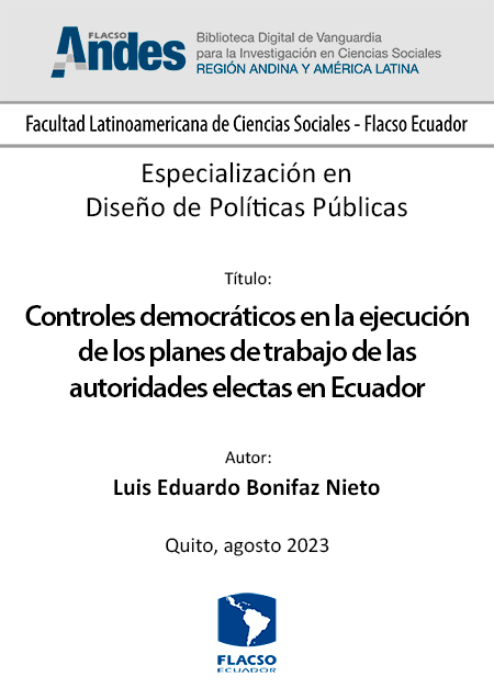 Bonifaz Nieto, Luis Eduardo. 2023. Controles democráticos en la ejecución de los planes de trabajo de las autoridades electas en Ecuador. Tesina de especialización, Flacso Ecuador.