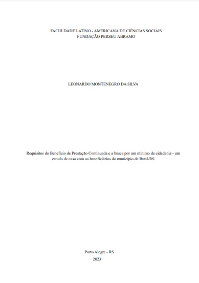Montenegro da Silva, Leonardo. 2023. Requisitos do Benefício de Prestação Continuada e a busca por um mínimo de cidadania – um estudo de caso com os beneficiários do município de Butiá/RS. Tesis de maestría, Flacso Brasil.
