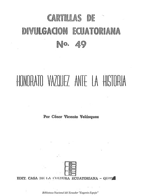Cartilla de divulgación ecuatoriana No. 49. Honorato Vázquez ante la Historia.