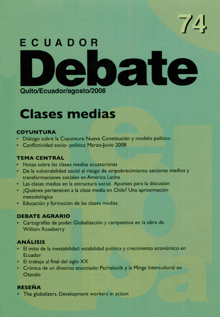 Ecuador debate. Clases medias. Centro Andino de Acción Popular. Quito: CAAP, (no. 74, agosto 2008): 228 p. ISSN: 1012-1498