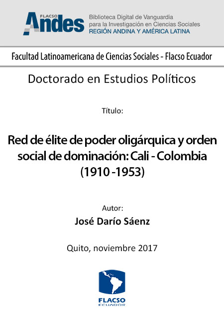 Sáenz, José Darío. 2017. Red de élite de poder oligárquica y orden social de dominación: Cali-Colombia (1910-1953). Tesis de doctorado, Flacso Ecuador.