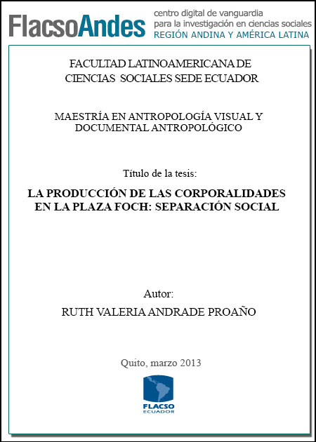 Andrade, R. V. (2013). La producción de las corporalidades en la Plaza Foch: separación social. (Tesis de Maestría en Antropología Visual y Documental Antropológico). Flacso sede Ecuador, Quito.
