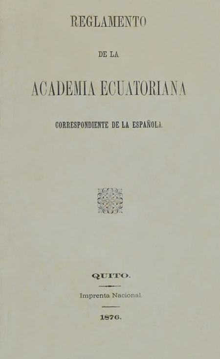 Real Academia Española. 1876. Reglamento de la Academia Ecuatoriana Correspondiente de la Española. Quito, Ecuador : Imprenta Nacional