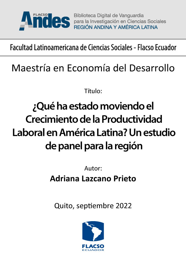 Lazcano Prieto, Adriana. 2022. ¿Qué ha estado moviendo el Crecimiento de la Productividad Laboral en América Latina? Un estudio de panel para la región. Tesis de maestría, Flacso Ecuador.
