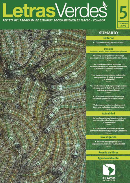 Letras verdes. Iniciativas locales frente a problemas globales. FLACSO sede Ecuador. Programa de Estudios Socioambientales. Quito: FLACSO, (no. 5, diciembre 2009): 29 p. ISSN: 1390-4280