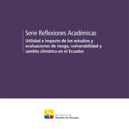 Secretaría de Gestión de Riesgos (SGR), Programa de las Naciones Unidas para el Desarrollo (PNUD) y Facultad Latinoamericana de Ciencias Sociales (FLACSO). 2014. Utilidad e impacto de los estudios y evaluaciones de riesgo, vulnerabilidad y cambio climático en el Ecuador. Quito: Secretaría de Gestión de Riesgos (SGR) / Programa de las Naciones Unidas para el Desarrollo (PNUD) / Oficina de Ayuda Humanitaria y Protección Civil de la Comisión Europea (ECHO) / Climate and Development Knowledge Network (CDKN) / Facultad Latinoamericana de Ciencias Sociales (FLACSO).